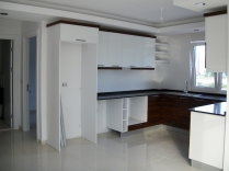 Лакированные кухонные шкафы.